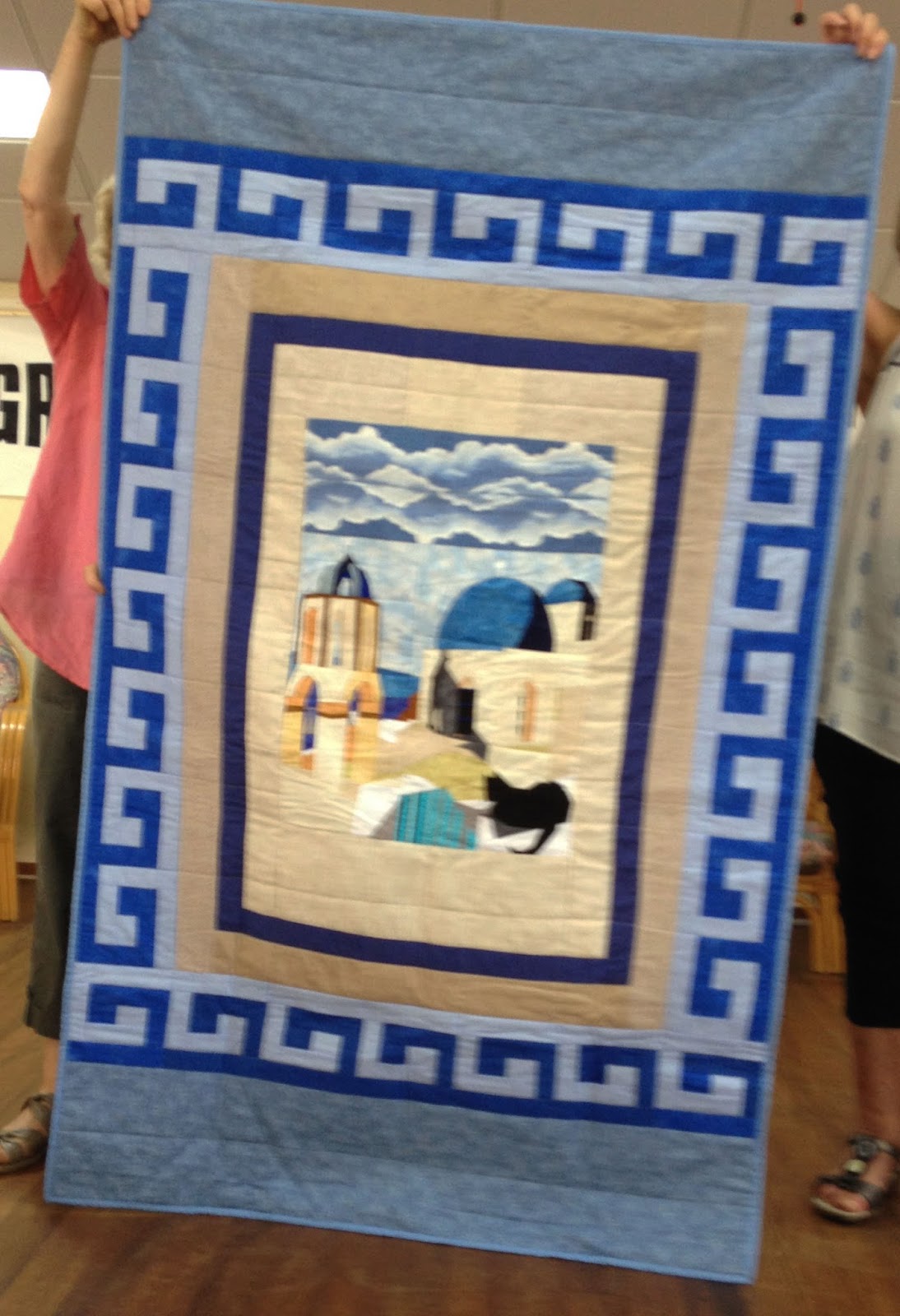 Dorothy has used to good effect two panels from the donated freebies plus a cute bunny which became the centre piece of the tartan quilt below.